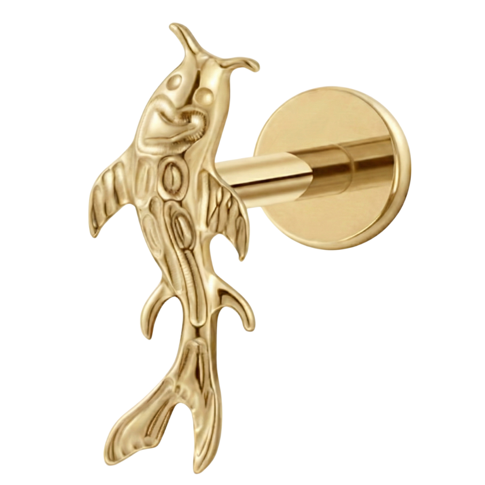 Celui-ci est mignon Labret Décoratif Titane - Poisson est un bijou qui apporte une bouffée de fraîcheur marine et une liberté joyeuse à votre style. Fabriqué en matériau certifié titane G23 en fait un choix entièrement biocompatible, ultra-léger et totalement sans danger pour votre peau, même si elle est extrêmement sensible. La silhouette précise du poisson avec une finition lisse et miroir reflète la lumière de manière phénoménale, imitant la lueur des écailles mouillées. C'est un accent fantastique pour les piercings de type Hélice, plate ou lobe, qui ajoutera une pincée d'humour et un charme nautique unique à votre pile d'oreilles.
