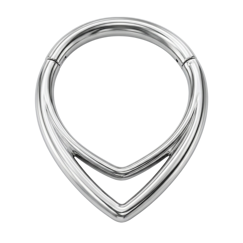 Podkreśl swoją indywidualność dzięki nowoczesnemu Stalowemu Clickerowi Segmentowemu. Ten unikalny model łączy klasyczne kółko z intrygującą, podwójną konstrukcją w kształcie ostrej łezki (V-shape). Surowy, geometryczny design sprawia, że biżuteria prezentuje się niezwykle futurystycznie i elegancko, stanowiąc doskonałą alternatywę dla standardowych ringów.